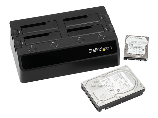 Produktbeskrivning StarTech.com 4-Bay USB 3.0 to SATA Hard Drive Docking Station, USB Hard Drive Dock, External 2.53.5 SATA III (6Gbps) SSDHDD Docking Station, Hot-Swappable Hard Drive Bay - Dual 40mm Fans, Top-Loading - kabinett för lagringsenheter