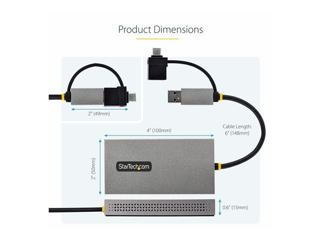 Produktbeskrivning StarTech.com USB to Dual HDMI Adapter, USB A/C to 2x HDMI Monitors (1x 4K 30Hz, 1x 1080p), Integrated USB-A to C Dongle, 4in/11cm Cable, Windows & macOS - USB 3.0 to HDMI Multi-Monitor Display Adapter for Laptop (107B-USB-HDMI) - videokort - HDMI / USB
