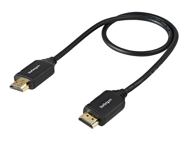 Produktbeskrivning StarTech.com Premium Höghastighets HDMI-kabel med Ethernet - 4K 60 Hz - 0,5 m - HDMI-kabel med Ethernet - 50 cm Kabel HDMI-kabel med Ethernet American Wire Gauge (AWG) 34 Kabellängd 50 cm Färg Svart Kontaktdon HDMI - hane Kontakt (andra änden) HDMI - hane Egenskaper Stöd för HDMI CEC, stöd för 4K-format, stöd för HDR Tillverkarens garanti 2 års garanti Designat för P/N: CDP2HD4K60H, CDPHDMDP2HD, DP2HD4K60H, KITBXDOCKPEU, KITBXDOCKPNA, KITBXDOCKPUK, KITBZDOCK, MOD4DOCKACPD, ST122HD202, ST124HD202, TB3DKM2HDL, USBC-HDMI-CDP2HD4K60 - Tillbehör