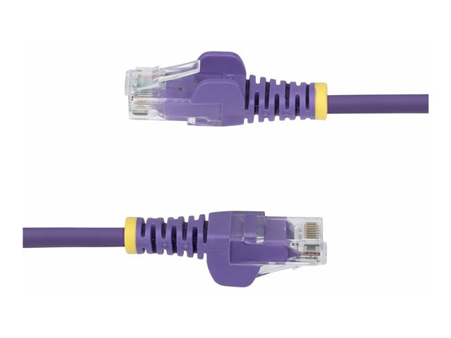 Produktbeskrivning StarTech.com patch-kabel - lila Typ Patch-kabel - CAT 5/5e/6 - IEEE 802.3bt Teknik UTP (oskärmat tvinnat par) Kablageschema T568B Trådar per kabel 8 kablar Egenskaper Halogenfri, hakfri, rak, stöd för 100W PoE++, klammer, test av flynnpass, flamskyddad, minskad returförlust (RL), minimerad Near-End Crosstalk (NEXT), pure bare copper conductors, upp till 10 Gbps, slim Diameter 3.6 mm Kontaktdon RJ-45 - hane Kontakt (andra änden) RJ-45 - hane Färg Lila Tillverkarens garanti Begränsad livstidsgaranti - Nedladdningsbara filer