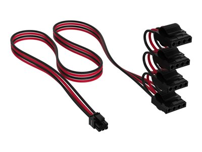 Produktbeskrivning CORSAIR - strömkabel - 6-stifts PCIe-ström till Molex - 75 cm Typ Strömkabel Egenskaper Flätade höljen av textil i tre lager Längd 75 cm Kontaktdon 6-stifts PCI Express-ström - hane Kontakt (andra änden) 4 x Molex - hona Färg Svart, röd - Nedladdningsbara filer