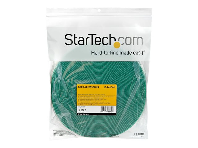 StarTech.com 50ft Hook and Loop Roll, Cut-to-Size Reusable Cable Ties, Bulk Industrial Wire Fastener Tape / Adjustable Fabric Wraps Green / Resuable Self Gripping Cable Management Straps