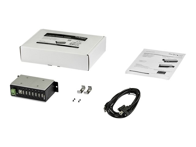 Produktbeskrivning StarTech.com USB 2.0-hubb med 7 portar - Industriell USB-A-hubb i metall med ESD- och 350 W överspänningsskydd - Utökad driftstemperatur -40 till 85 °C - monterbar på DIN-skena/vägg/skrivbord - USB-expansionshubb - hubb - 7 portar - TAA-kompatibel Typ av enhet Hubb - 7 portar Undertyp USB Portar 7 x USB 2.0 Funktioner Överspänningsskydd, 15KV ESD Protector Standarder som följs USB 2.0 Strömtillförsel Likström 7 - 24 V Dimensioner (BxDxH) 11.2 cm x 6.3 cm x 4.3 cm Vikt 500 g TAA-kompatibel Ja Tillverkarens garanti 2 års garanti Designat för P/N: ITB20D3250 - Tillbehör