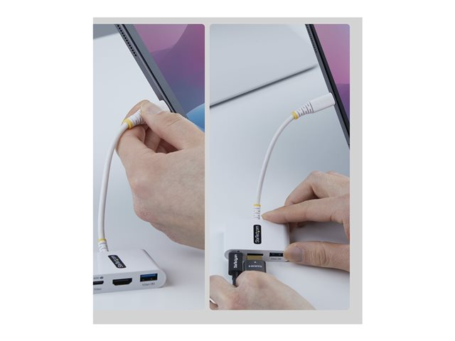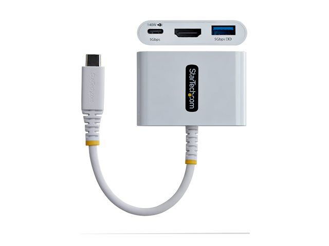 Produktbeskrivning StarTech.com - dockningsstation - USB-C - HDMI Typ av produkt Dockningsstation Dockningsgränssnitt USB-C Videogränssnitt HDMI Dimensioner (BxDxH) 4 cm x 5.9 cm x 1.4 cm Vikt 34 g Färg Vit Strömtillförsel USB 10 Watt 140 Watt Effekt (DC 5 V) Tillverkarens garanti 3 års garanti - Tillbehör