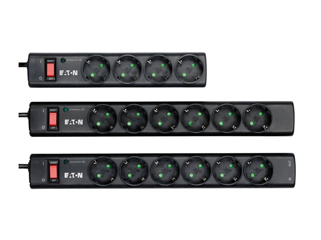 Produktbeskrivning Eaton Protection Strip - överspänningsskydd Typ av enhet Överspänningsskydd - extern Vikt 408 g Utdatakontakter 6 x ström Färg Kolgrå, RAL 7021 Dimensioner (BxDxH) 39 cm x 5.2 cm x 4.2 cm Tillverkarens garanti 2 års garanti - Nedladdningsbara filer